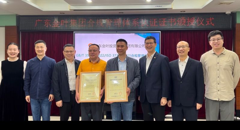 今年以来,广东金叶集团积极响应号召,启动集团总部合规管理体系建设,在中检广东公司的助力下,于今年11月顺利获得ISO 37301:2021/ GB/T 35770-2022国际标准和国内标准“双认证”,标志着广东金叶集团的合规管理体系达到国际国内认可的水平,迈上合规管理高质量发展新台阶。