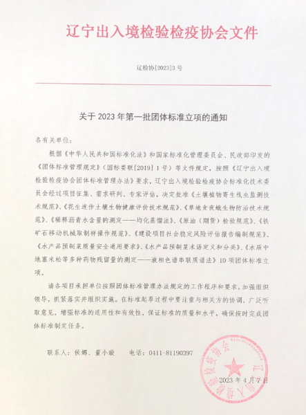 近日,中国中检山东公司申报的4项团体标准通过辽宁出入境检验检疫协会标准化技术委员会审核并成功立项,对进一步推动行业标准化检测方法统一规范,指导检验检测认证机构科学规范开展相关工作具有重要意义。