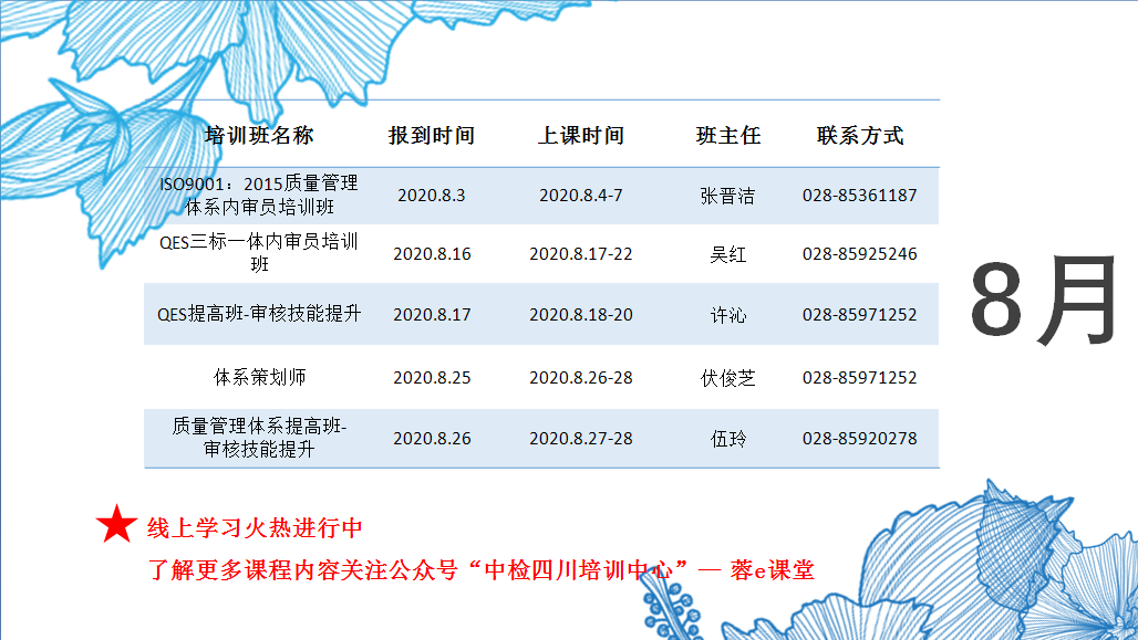 2020年6-8月培训计划