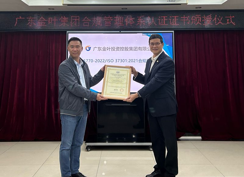 今年以来,广东金叶集团积极响应号召,启动集团总部合规管理体系建设,在中检广东公司的助力下,于今年11月顺利获得ISO 37301:2021/ GB/T 35770-2022国际标准和国内标准“双认证”,标志着广东金叶集团的合规管理体系达到国际国内认可的水平,迈上合规管理高质量发展新台阶。