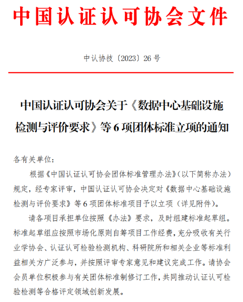 近日,中国中检电子电气产品线申报的团体标准《数据中心基础设施检测与评价要求》通过中国认证认可协会审核,并成功立项。该标准填补了我国数据中心基础设施与评价领域的空白,进一步推动行业标准化检测方法、指标要求的统一,对指导检测认证机构科学合理开展工作具有重要意义。